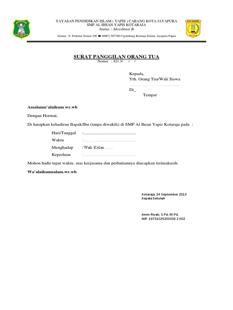 Selain itu, surat pernyataan orang tua juga bisa dipergunakan ketika sang anak sakit dan tidak bisa masuk sekolah. Doc contoh undangan rapat orang tua yaya deui academia edu. Kepala baak universitas gunadarma di tempat hal : Contoh surat ijin orang tua untuk perkemahan pramuka. Lalu apa yang kamu lakukan?
